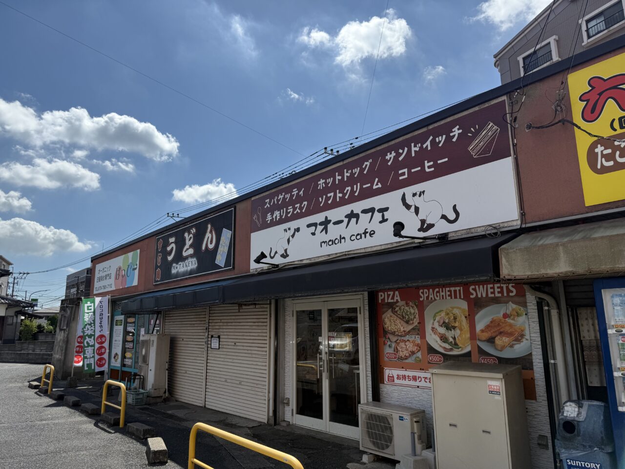 駐車場に車を停めて、店内へ歩く途中、駐車場の敷地内にある数店舗のお店の中で、シャッターに張り紙が貼ってある店舗を発見しました。