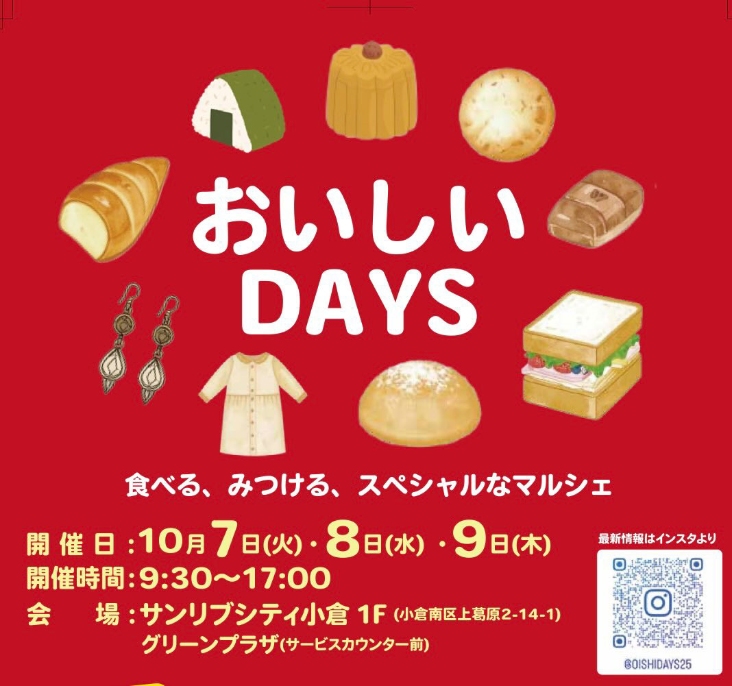 【北九州市小倉南区】2025年10月7日から3日間、グルメを中心に雑貨など特別なあれこれが集う「おいしいDAYS」が開催されます!