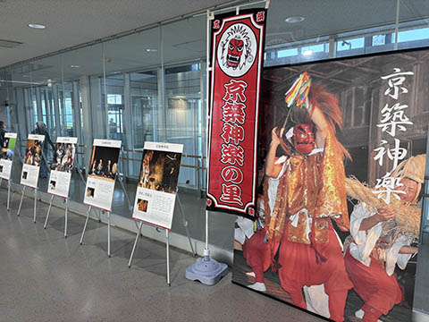 現在、北九州空港では、京築神楽や京築地域の魅力あふれる展示が行われています。