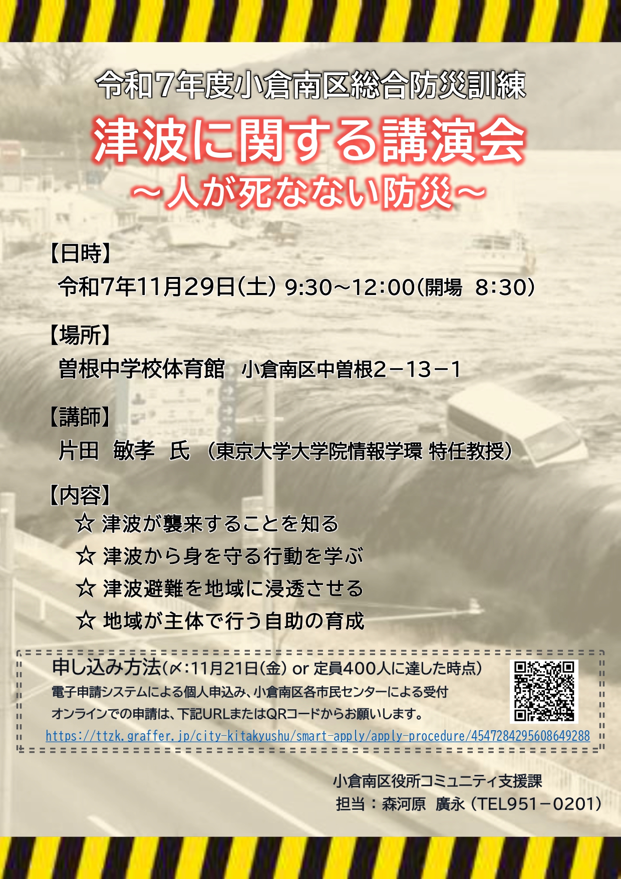 令和7年度小倉南区総合防災訓練 講演会は事前のお申し込みが必要となります。