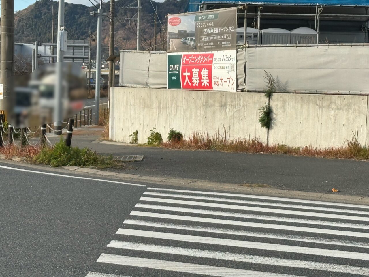 「CAINZ」「2026年 春OPEN予定」オープニングメンバー大募集」と書いてあります。フェンスの横には建設中の建物が。
