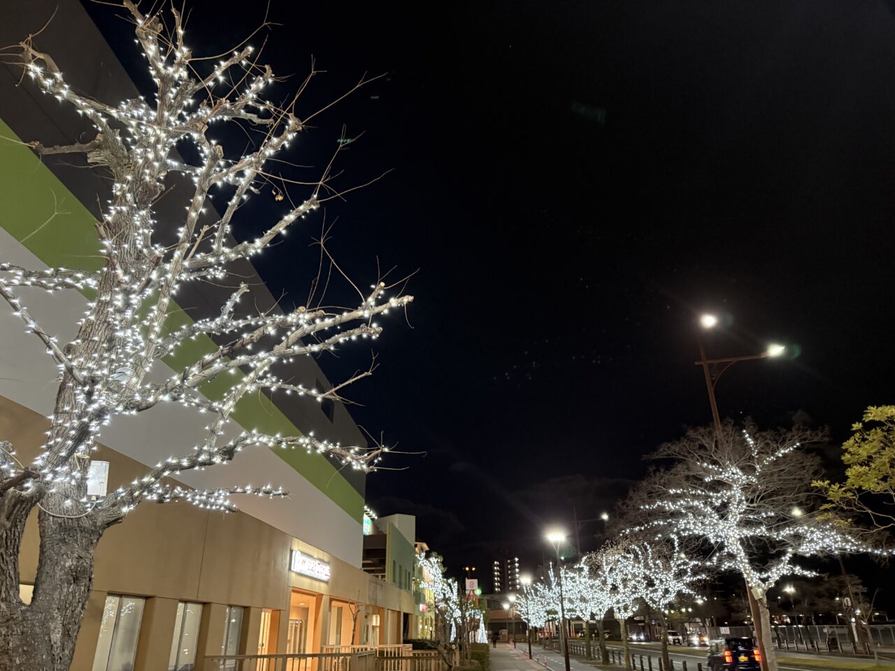 毎年、11月頃からJR下曽根駅南口前にはイルミネーションの光。