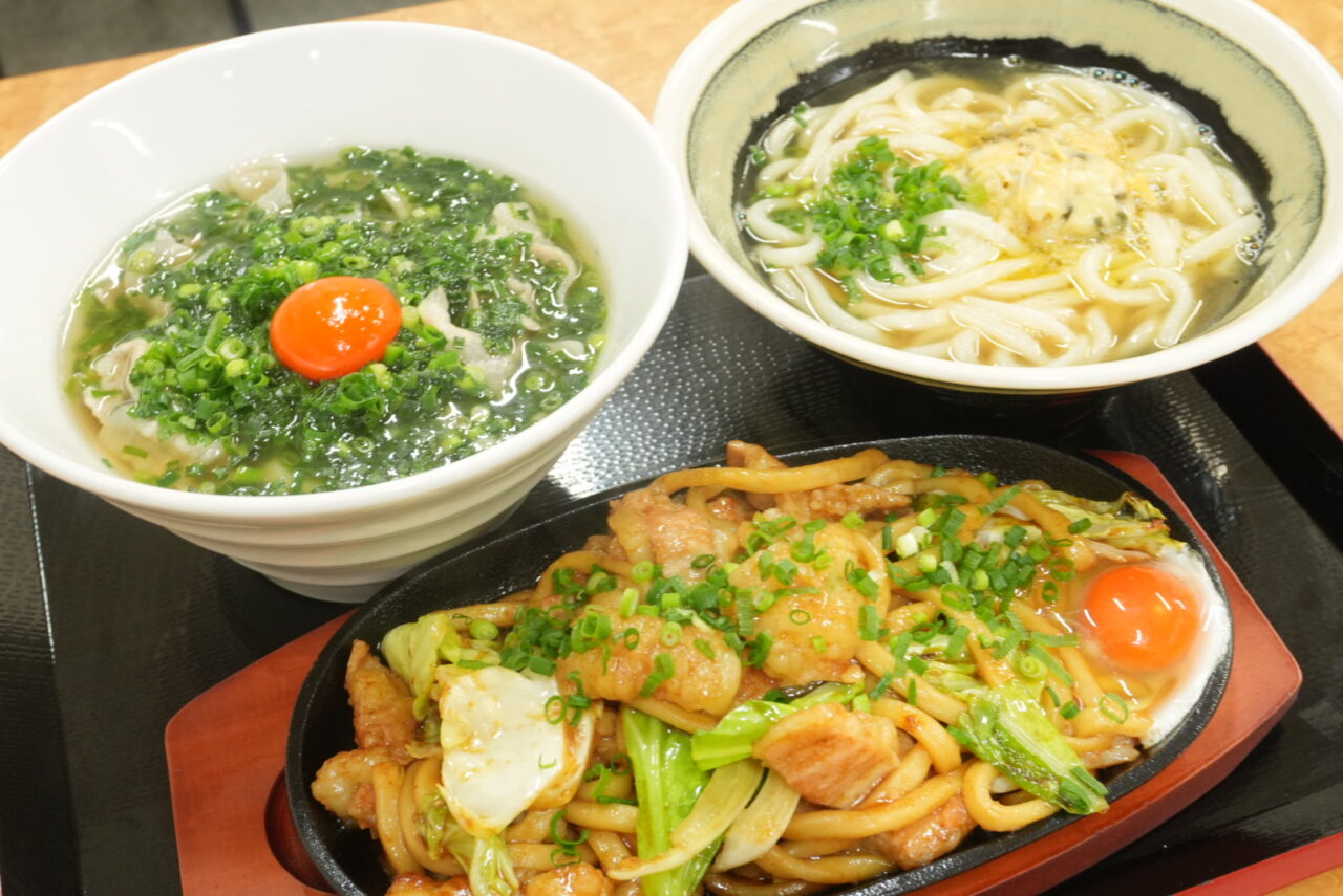 「究極の脂うどん」・「あさりバターうどん」・「ホルモン焼きうどん」です。