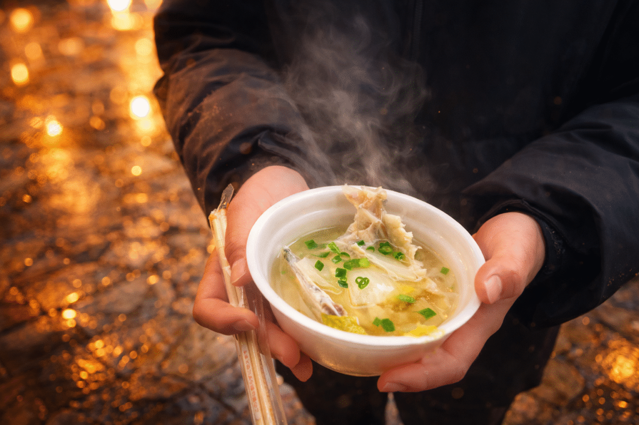 食工房にて数量限定でふぐ汁を無料でふるまいが行われます。(※数量限定)