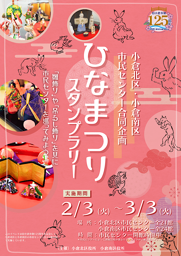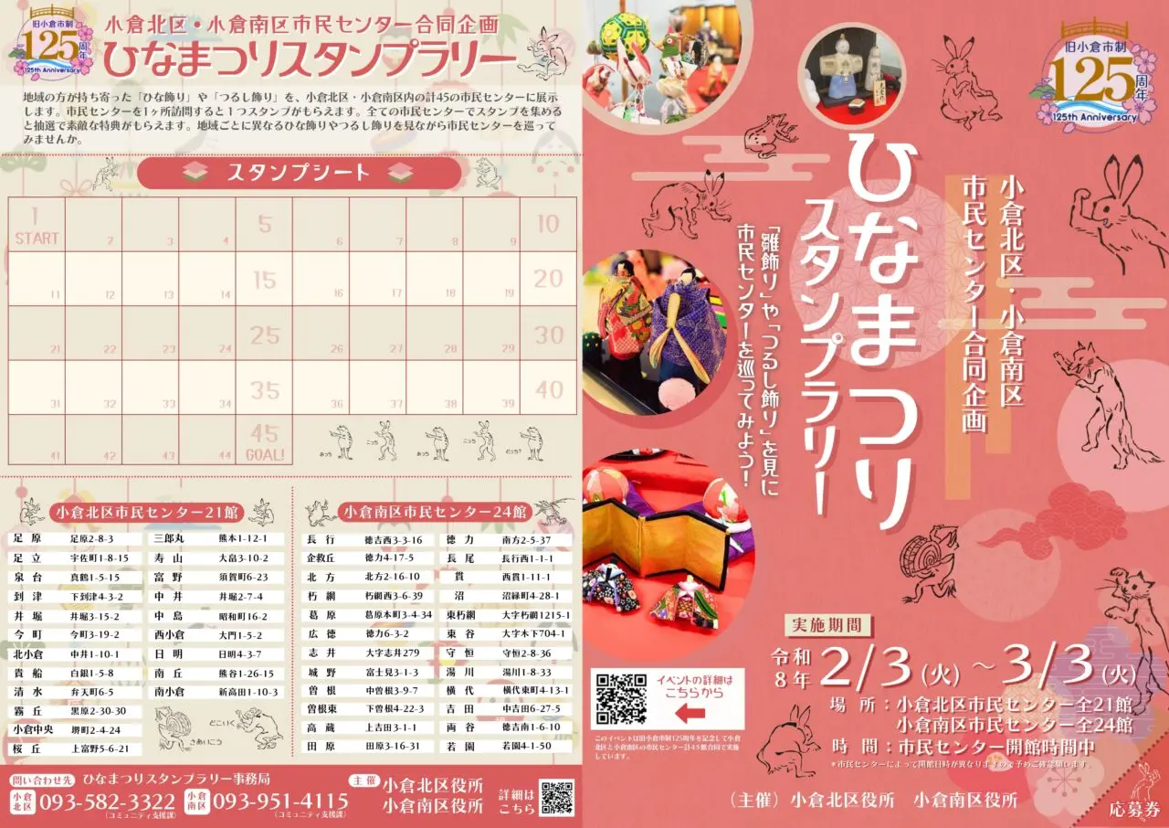 2025年2月、小倉南区制50周年を記念して小倉南区内の市民センター全24館で合同開催された「ひなまつりスタンプラリー」。
