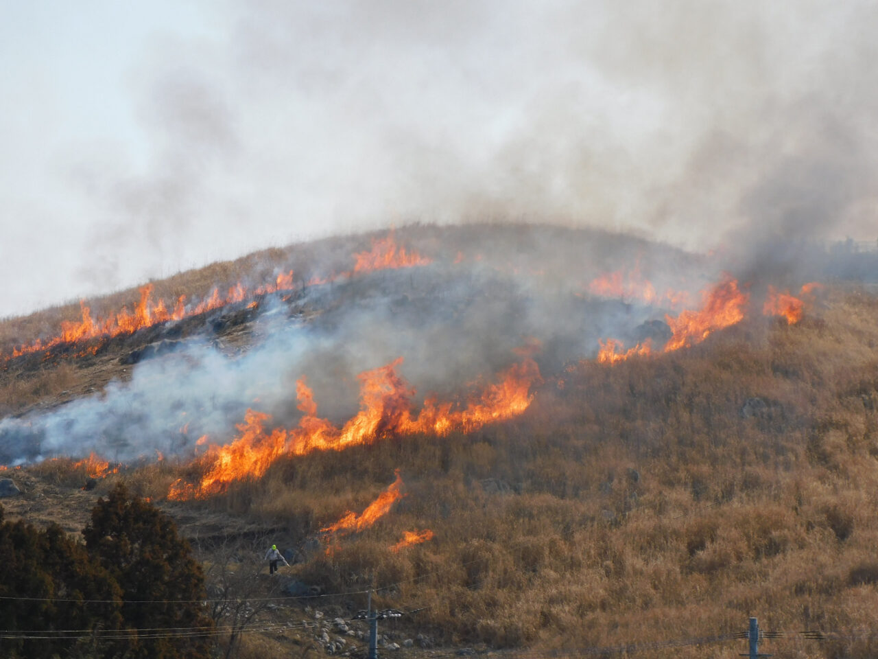 景観維持や害虫駆除、林野火災の防止などの目的で毎年行われる平尾台の野焼き。