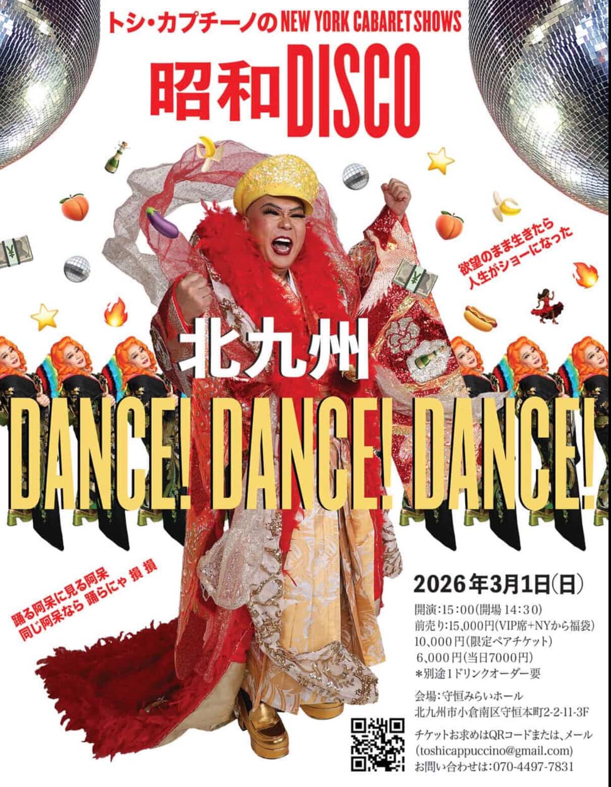 【北九州市小倉南区】DISCO世代の皆さん!!2026年2月28日『トシ・カプチーノのNEW YORK CABARETSHOWS 昭和DISCO』が開催されます。