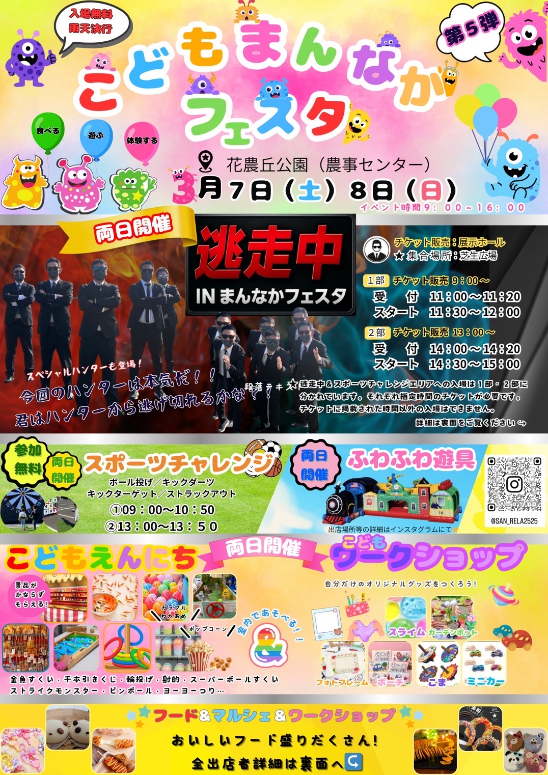 【北九州市小倉南区】今回は逃走中も♡2026年3月7日・8日にこどもたちに大人気のイベント「こどもまんなかフェスタ」が花農丘公園で開催されます!!