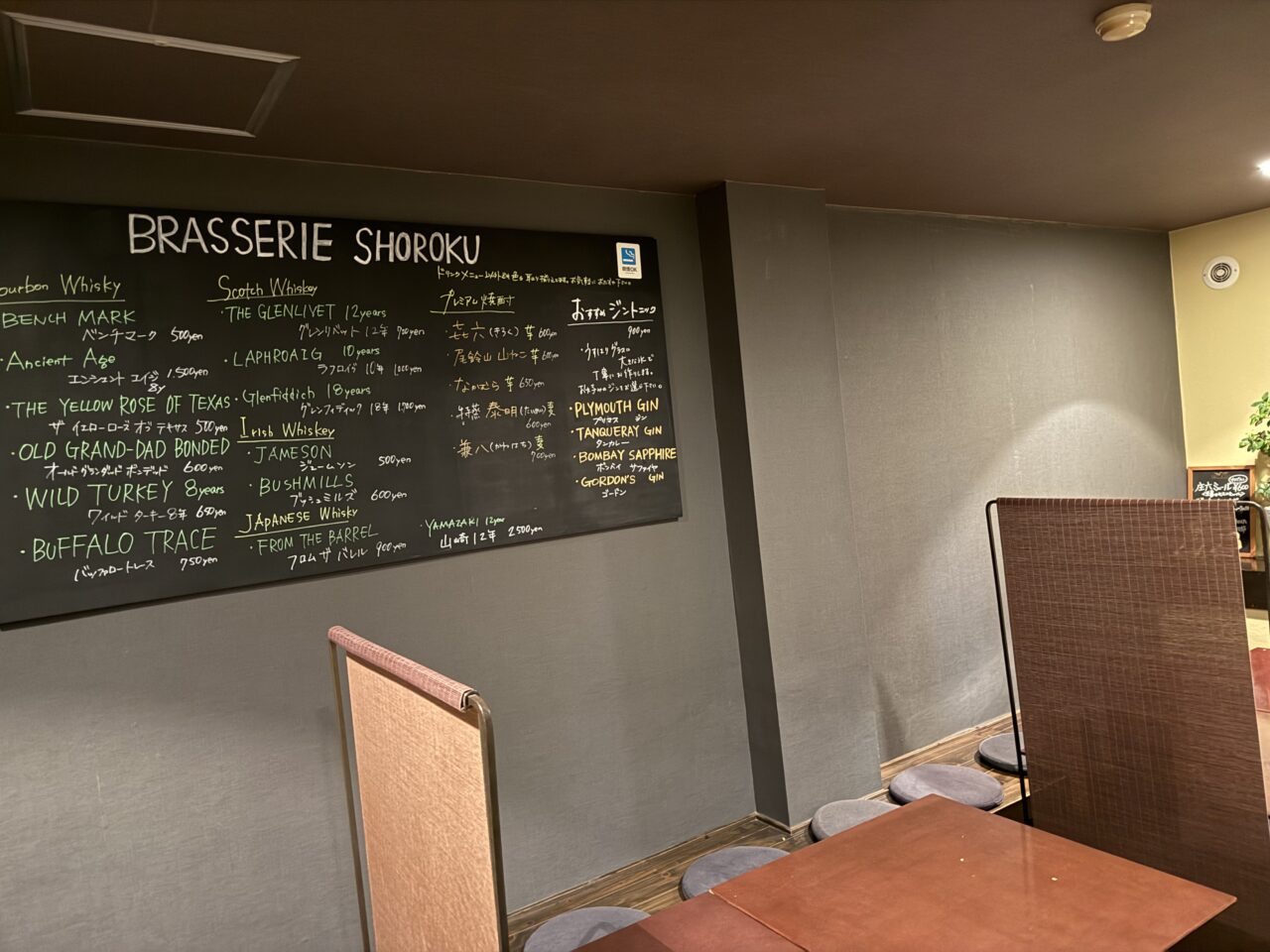 他店では味わえないお酒を楽しむことができるのがブラッセリー庄六の魅力の一つです。店内には、お酒好きの店主さんこだわりの洋酒がズラリ。その数、140種類以上にも及ぶんだとか。