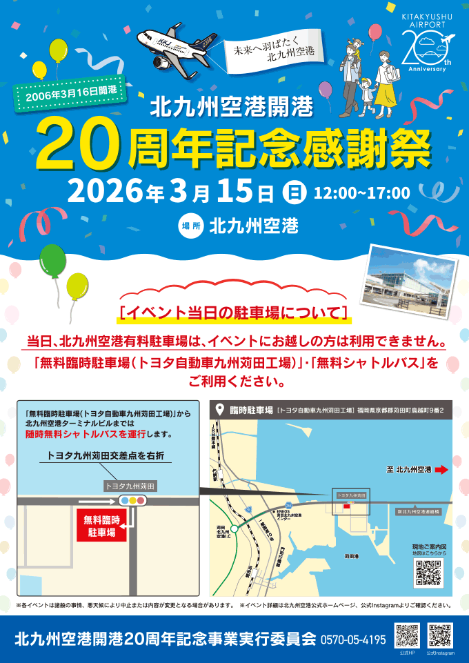 そんな北九州空港で2026年3月15日に「北九州空港開港20周年記念感謝祭」が開催されます。