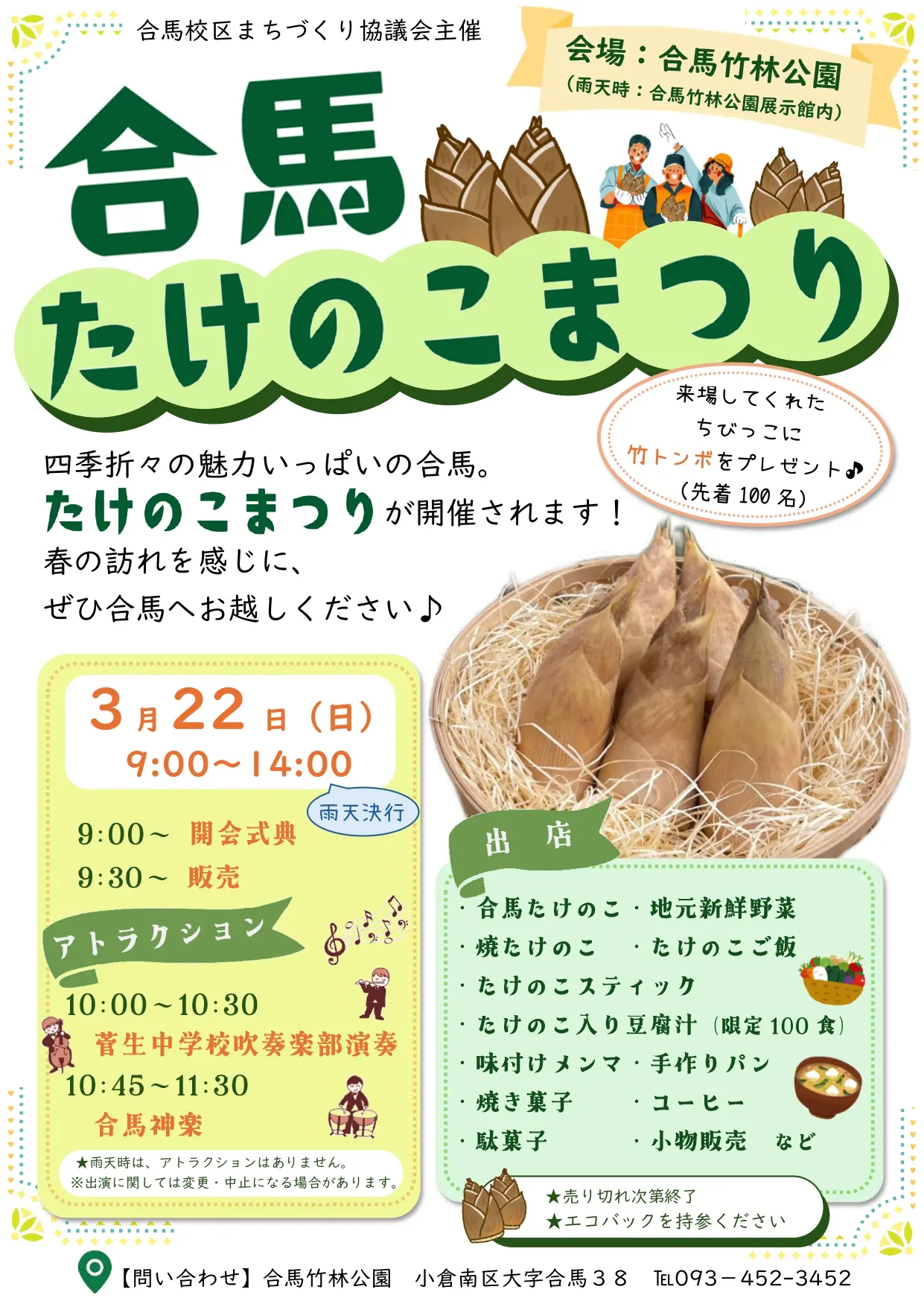 【北九州市小倉南区】2年に1度。たけのこの里、合馬の春の味覚が集合!2026年3月22日「合馬 たけのこまつり」が開催されます!