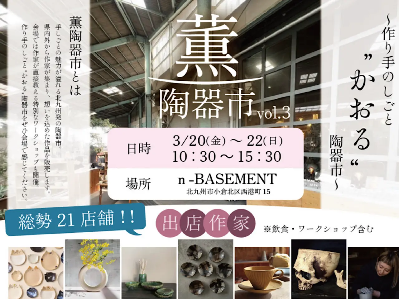 県内外の作家さんがn-BASEMENTに集まり、想いのこもった作品が販売されます。作り手の仕事”かおる”陶器市へお出かけになってみてはいかがでしょうか?ここでしか出会えない作品がn-BASEMENTに大集合の予感です♡