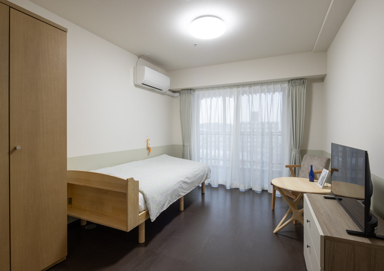 居室は全30室すべて個室でバルコニー付き。エアコン・洗面台・トイレ・緊急通報装置などが備えられ、使い慣れた家具の持ち込みも可能です。
